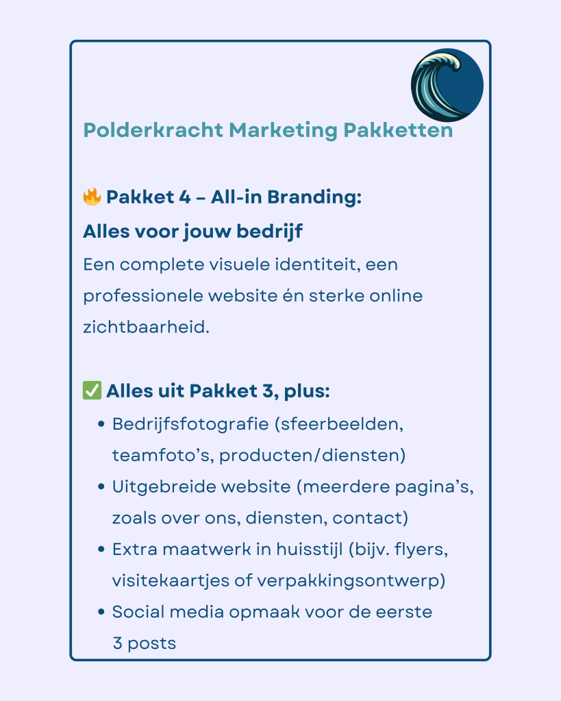 Geen enkel bedrijf is hetzelfde, daarom bied ik flexibele pakketten. Kies wat bij jou past of laat me weten wat je nodig hebt – maatwerk is altijd mogelijk!